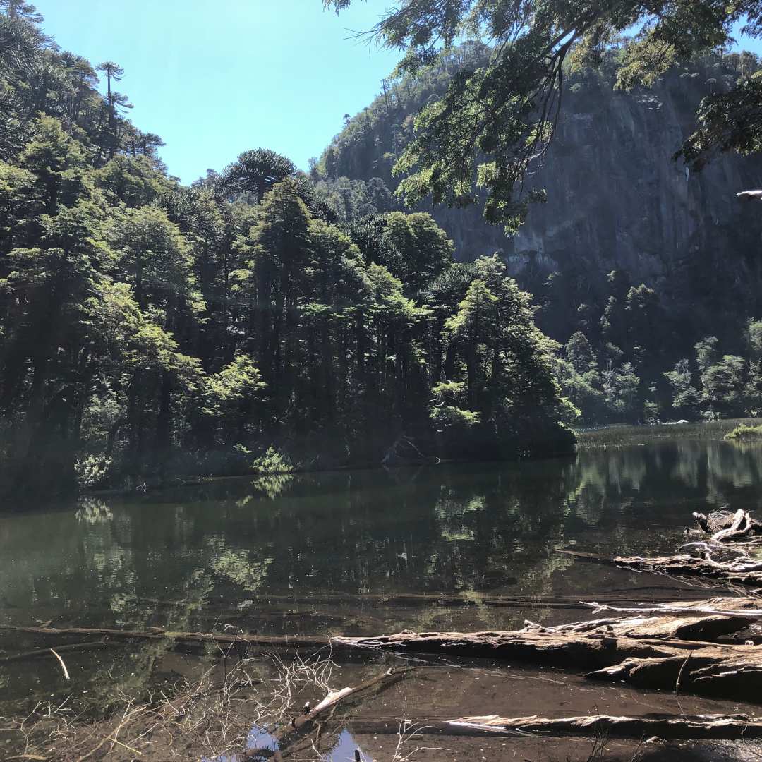 Situado en medio de la exuberantes bosque llenos de la naturaleza del Parque Huerquehue, el Lago Chico es una pausa de serenidad en el sendero de Los lagos. Sus aguas tranquilas con troncos sumergidos y el entorno boscoso que sube del lago hacia sus montañas, te harán sentir paz y belleza de su entorno con un gran muro de roca de fondo.
