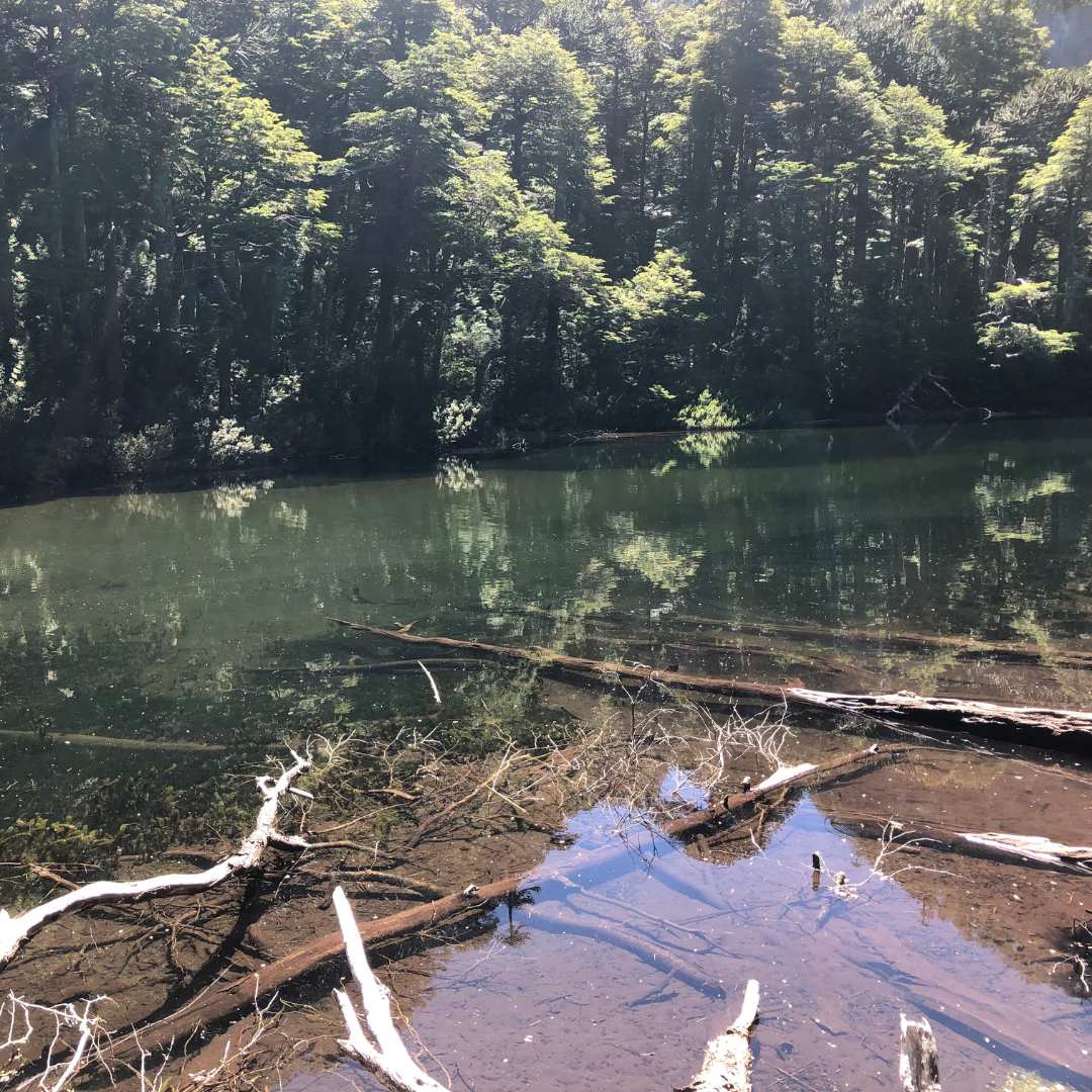 Un rincón paradisíaco después de la cascada Nido de Águila en el sendero Los lagos del Parque Nacional Huerquehue: el Lago Chico.